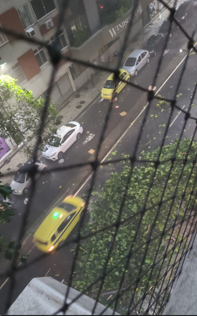 A cidade do Rio foi atingida por uma forte chuva acompanhada de rajadas de vento na tarde deste sábado (14), provocando quedas de árvores, bolsões d’água e alagamentos em diversas regiões. Segundo o Alerta Rio, núcleos de chuva se formaram rapidamente sobre o Maciço da Tijuca, a Zona Sul e o Centro da cidade, com previsão de pancadas rápidas acompanhadas de raios e ventos intensos.