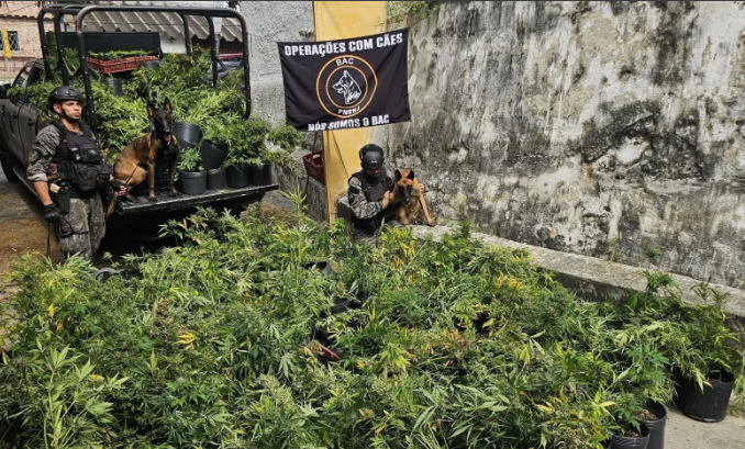 Os agentes perceberam a mudança no comportamento dos cães da raça Pastor Belga de Malinois nas proximidades da Rua Licurgo. Os animais seguiram até um imóvel aparentemente abandonado, onde localizaram uma estufa com centenas de pés de maconha.